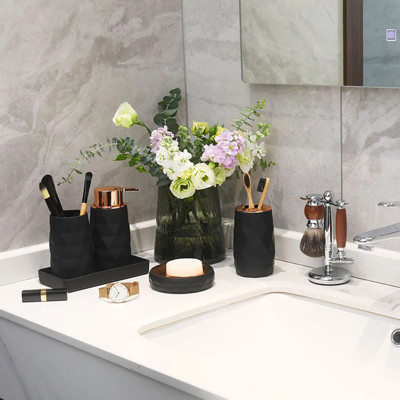 Bathroom Accessories Set Soap Dispenser Bottle Dish Washroom Toothbrush Holder Cup Suit Lotion Rack Toilet Brush Garbage Can