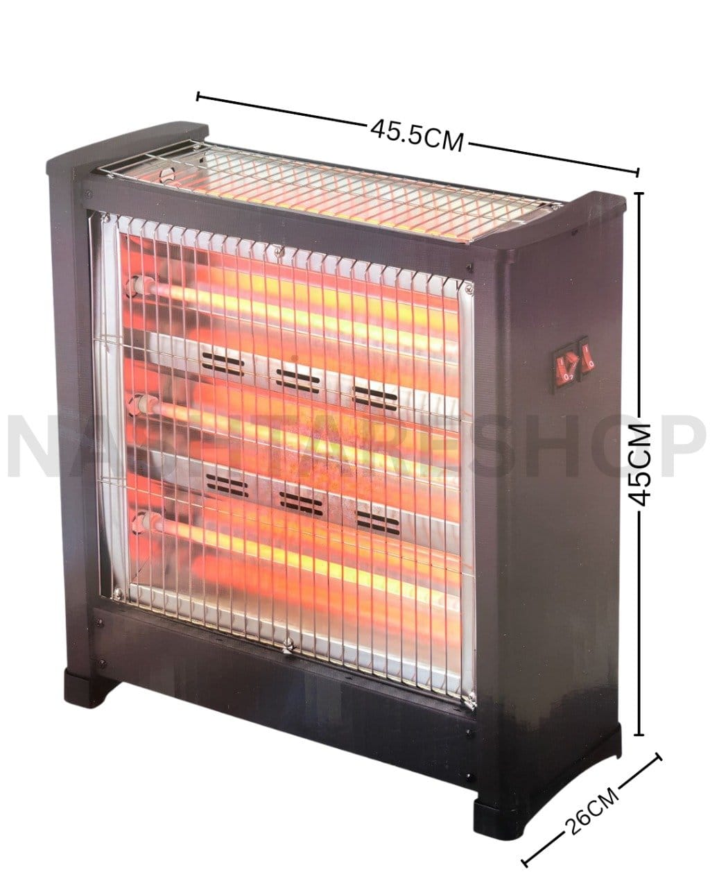The General Electric Warmer LX-1503H delivers powerful and reliable heating for home or commercial use. Designed with 7 quartz heating elements and 3 heating faces, it ensures fast heat distribution and consistent warmth in medium to large spaces. With multiple heat settings and a built-in tip-over safety switch, this heater offers both comfort and peace of mind.