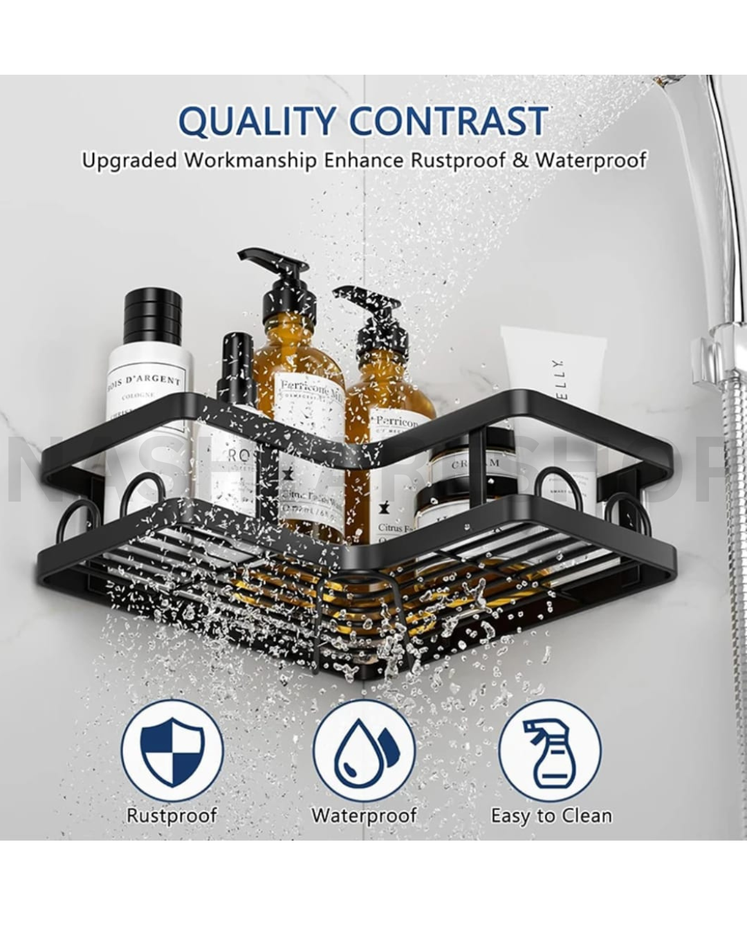This Corner Shower Shelf is designed to fit perfectly on most 90° smooth walls, making it ideal for bathrooms, kitchens, and laundry areas. It attaches without drilling, using strong waterproof adhesive that ensures a sturdy hold on marble walls, glass panels, tiles, and other smooth surfaces. The open-bottom design provides quick drainage to keep your items dry and clean.