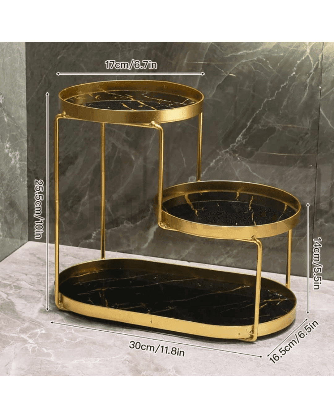 The Luxury Triple Shelf Organizer is an elegant storage and display piece designed to elevate any space. Featuring a premium black marble-style base combined with gold iron detailing and glass shelves, it adds a modern luxury touch to your home. Perfect for organizing cosmetics, perfumes, decor items, or small accessories while keeping everything stylishly displayed.