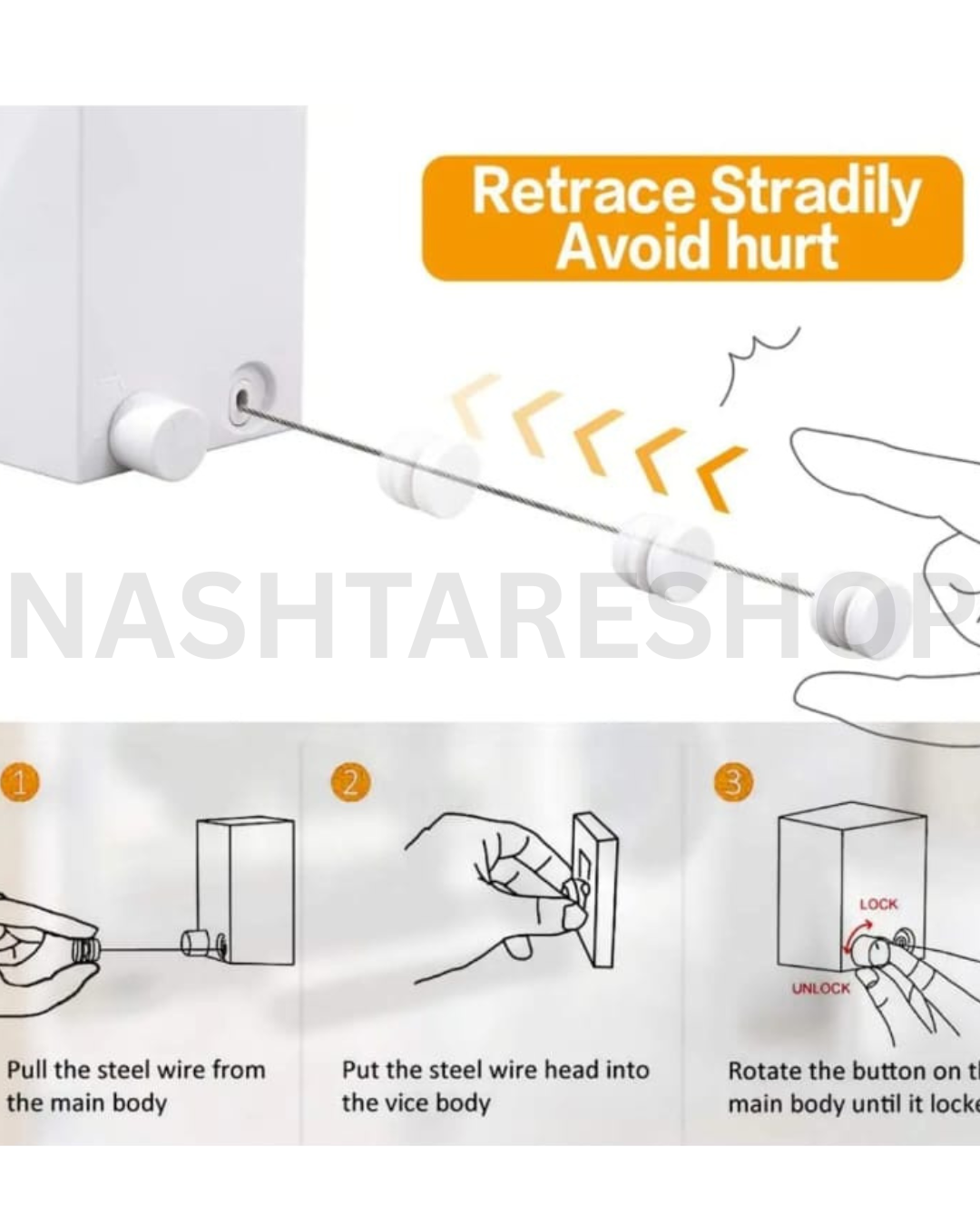 The Portable Clothes Drying Rope is a compact and reliable solution for drying laundry anywhere—indoors or outdoors. Made from durable ABS plastic, this lightweight rope stretches up to 14 ft and supports a maximum load of 20 kg, making it perfect for travel, camping, balconies, bathrooms, and home use.