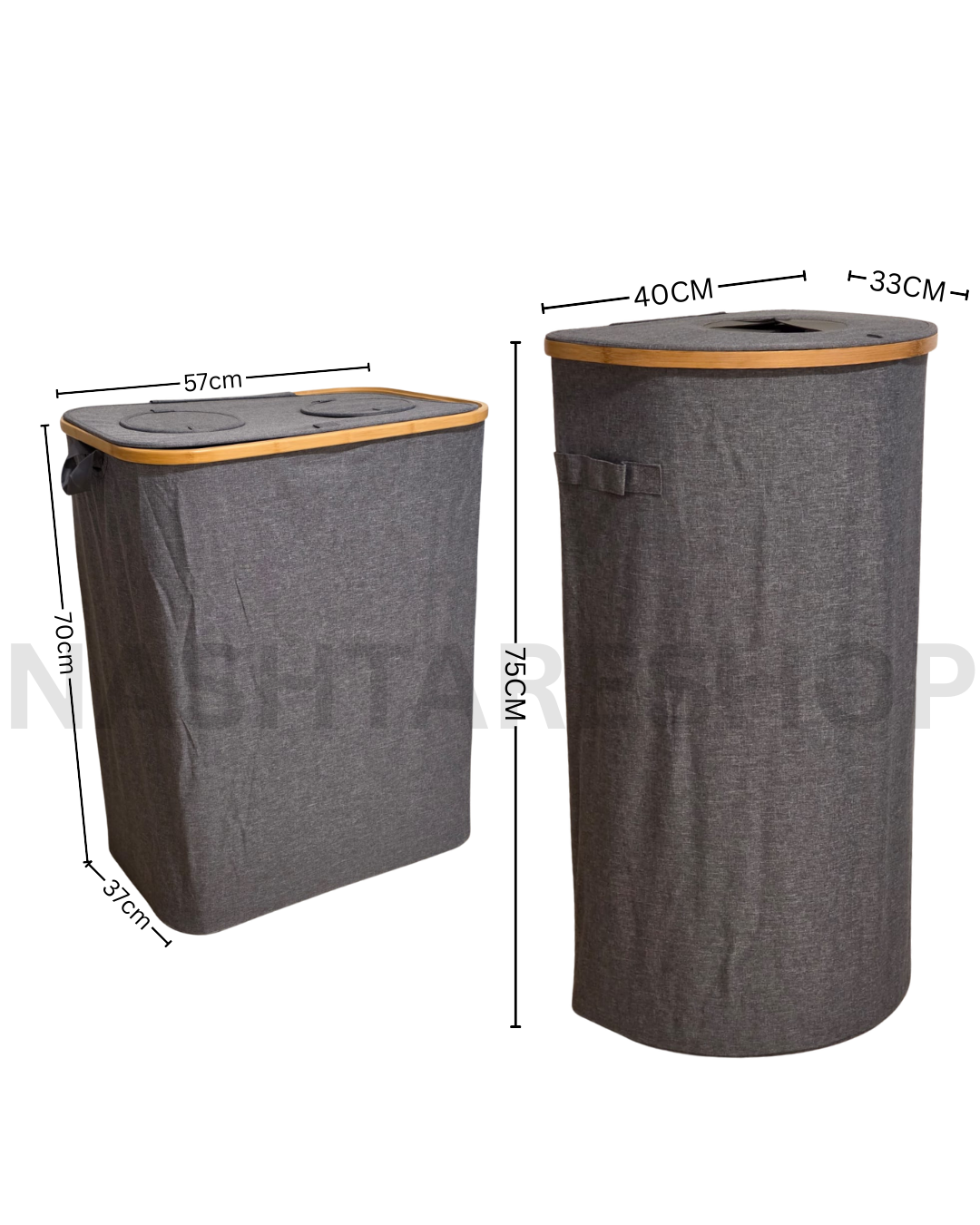 Stylish and durable laundry basket designed to keep your space organized. Made with a strong bamboo frame and high-quality Oxford fabric, this basket is perfect for bedrooms, bathrooms, laundry rooms, and closets. Available in round and rectangular shapes to suit any space, with the rectangle version featuring two compartments for easy sorting.