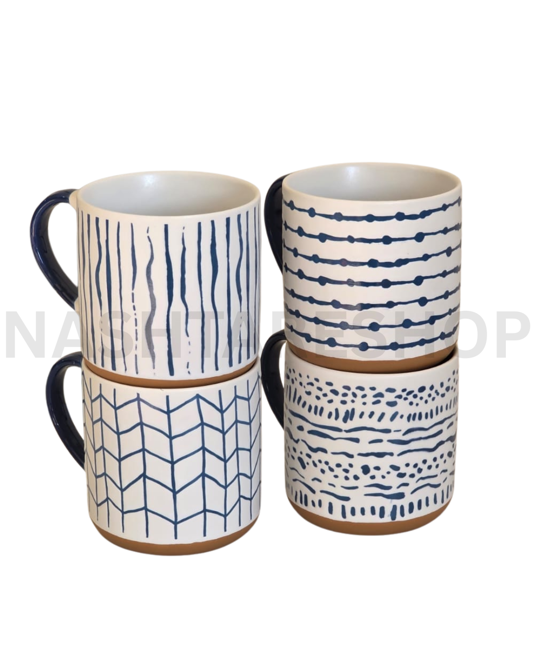 This elegant 4-Piece Porcelain Mug Set is designed for everyday use, offering a perfect blend of style, durability, and practicality. Each mug features a generous 450 ml capacity, making it ideal for coffee, tea, hot chocolate, or any daily beverage. With 4 different engraved patterns , this set brings a refined and modern touch to your kitchen or dining table.