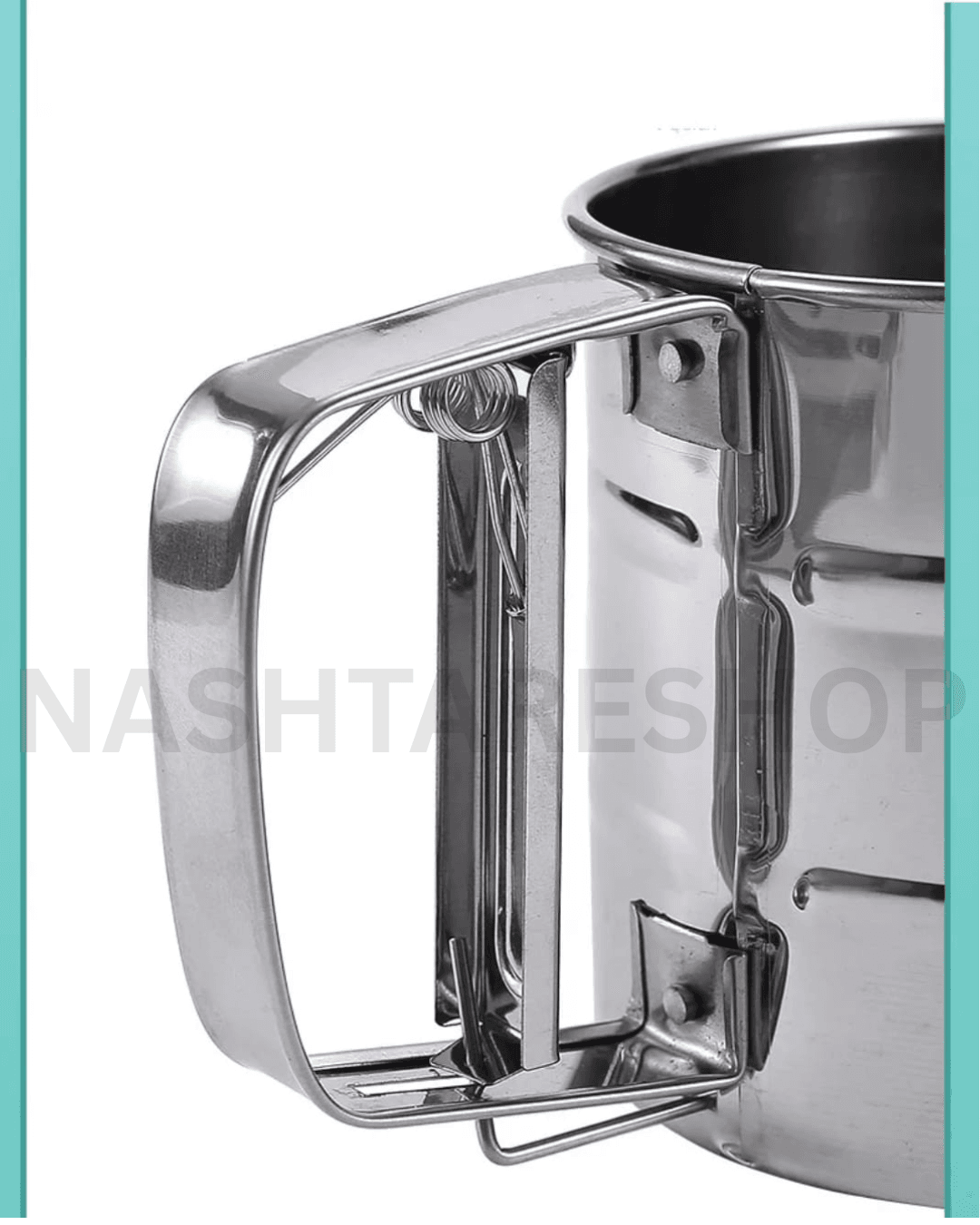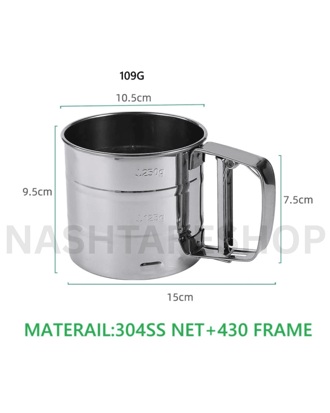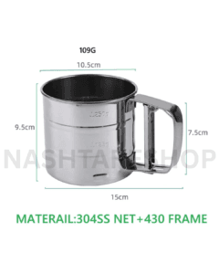 The Stainless Steel Flour Sieve Cup is a practical baking tool designed for quick and effortless sifting. With a simple hand-press mechanism, it evenly filters flour, powdered sugar, and other dry ingredients, ensuring smooth, lump-free results. Made from durable stainless steel, it is perfect for home baking and everyday kitchen use.