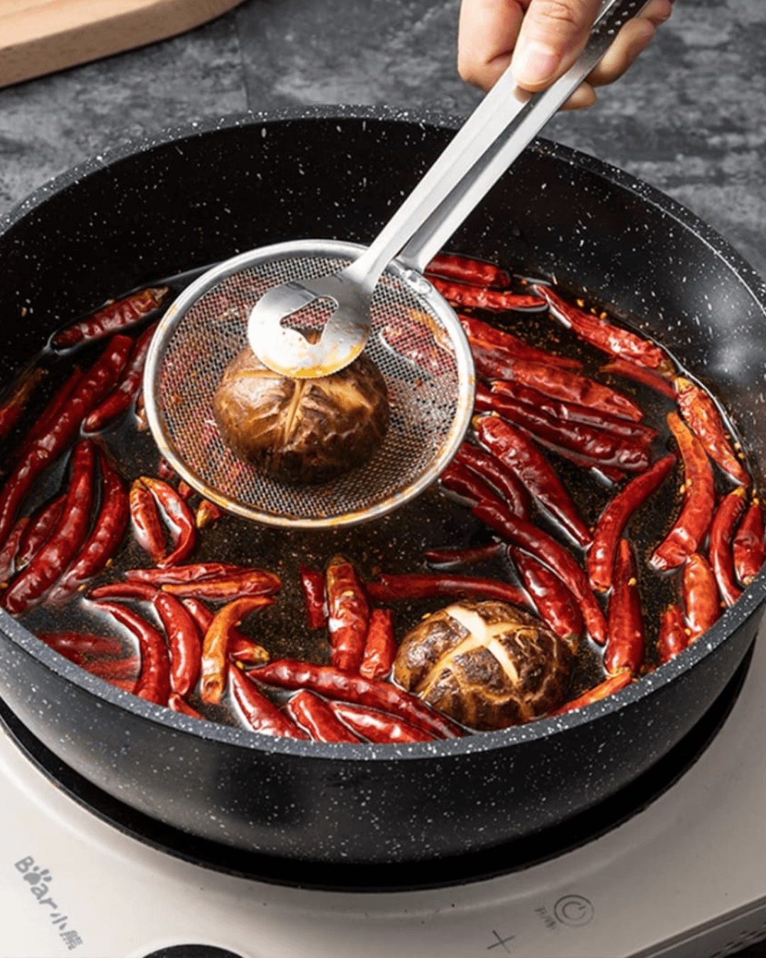 • Fine Mesh Strainer – effectively filters excess oil for healthier meals